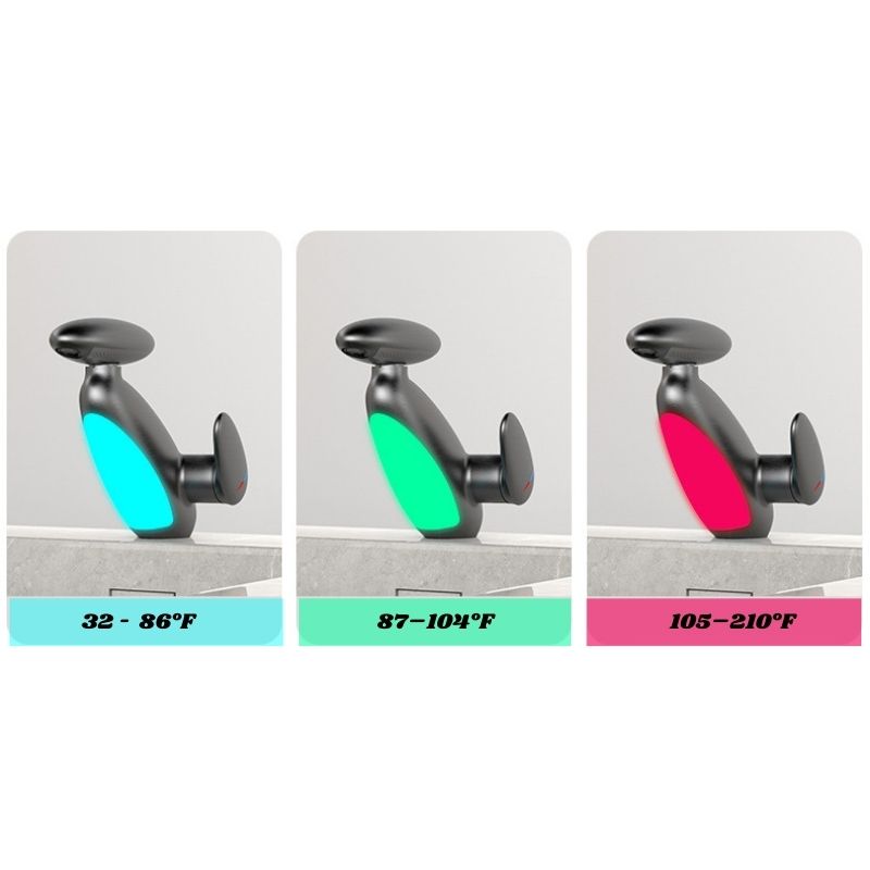 The LED ring changes color based on water temperature: