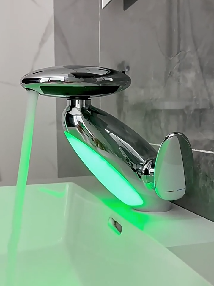 The LED ring lights up based on water temperature: