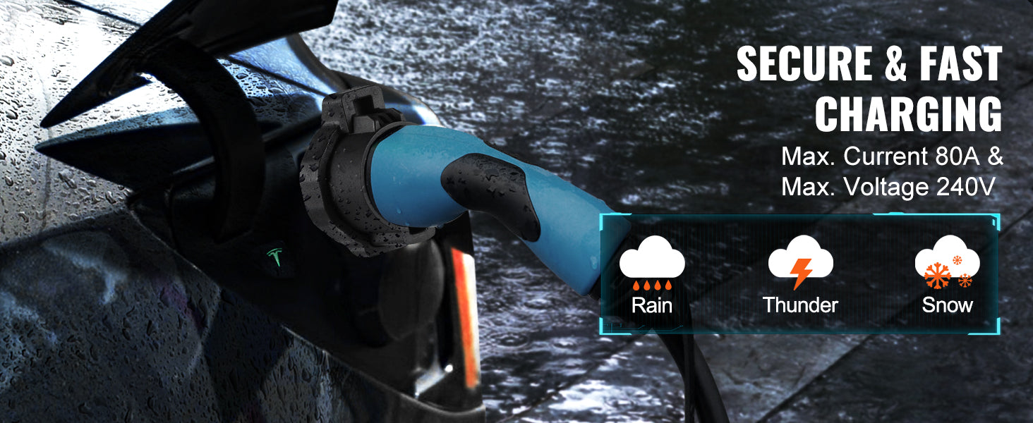 Yes. It supports up to 80A and 240V AC for efficient charging speeds (depending on the charging station).