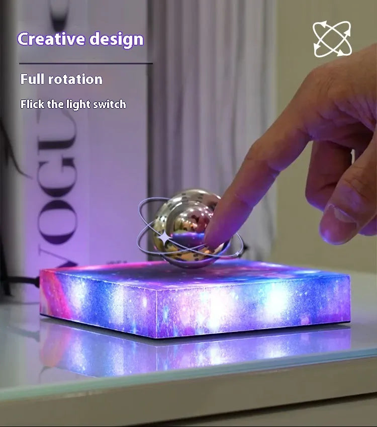 Not at all. The lamp spins silently thanks to frictionless magnetic levitation—perfect for bedrooms, offices, or calming spaces.