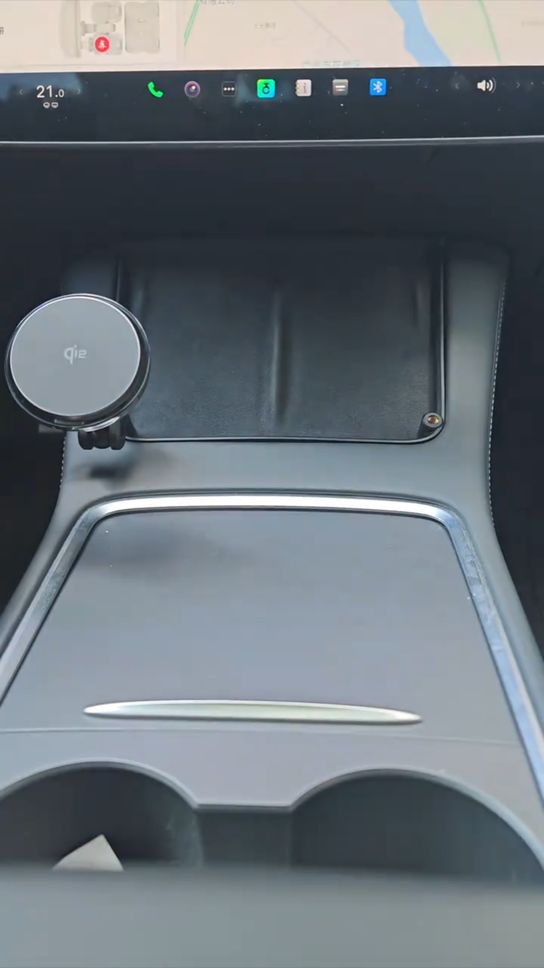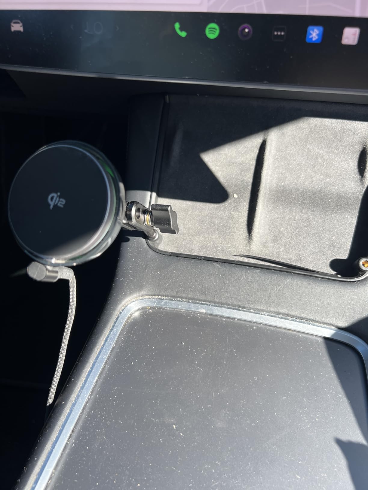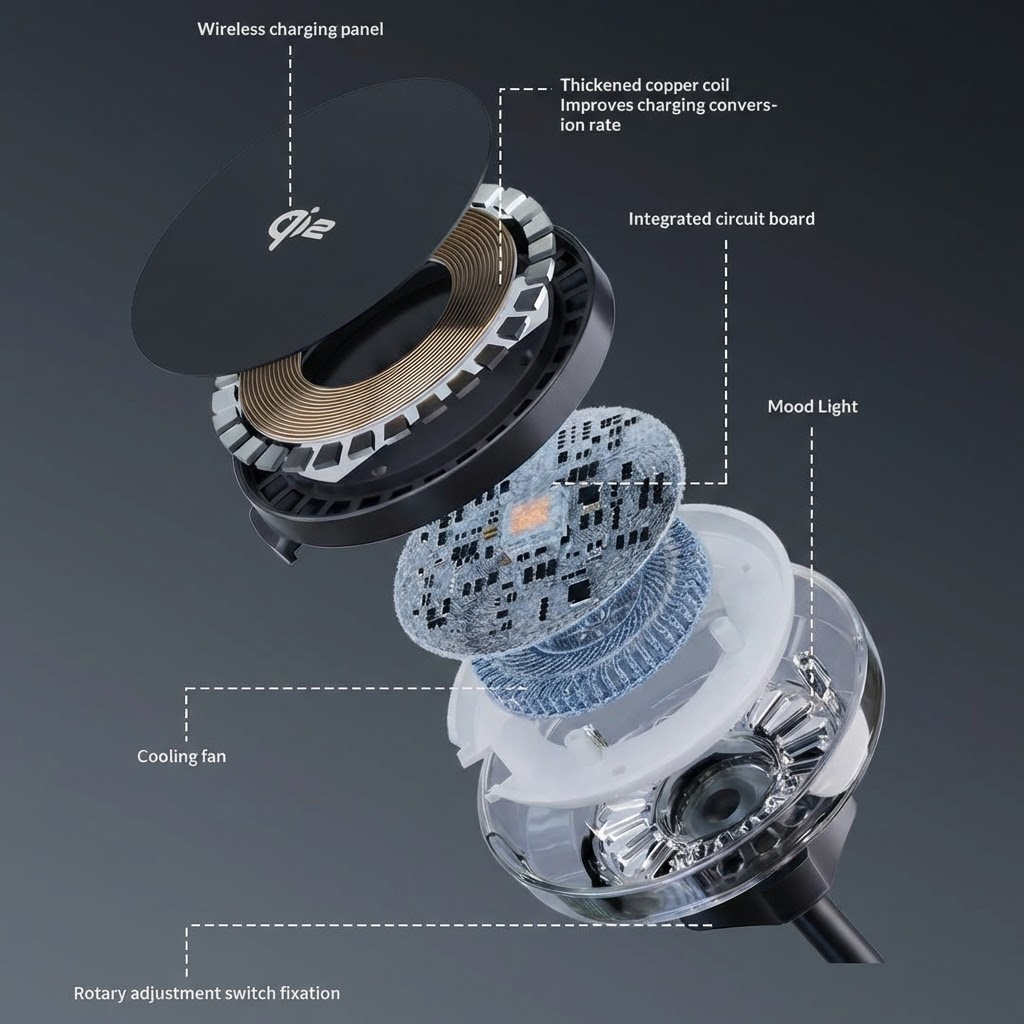 The built-in active cooling fan prevents overheating during fast wireless charging, helping maintain consistent performance on long drives. Its low-noise airflow design and vibration-dampened structure keep operation quiet, making it ideal for the silent cabin of a Tesla.